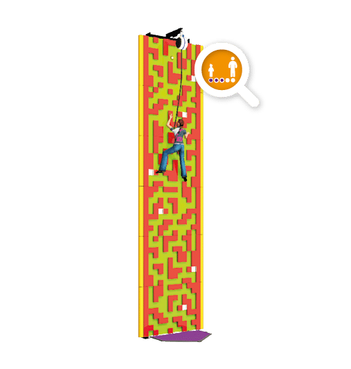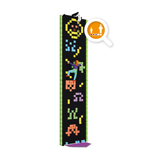 A beautiful and vibrant friendly wall of pixels arranged in an eye-catching pattern. Find the best grips on the round holds and pick your color to climb your way to the top. Color you will choose will decide the level of difficulty.